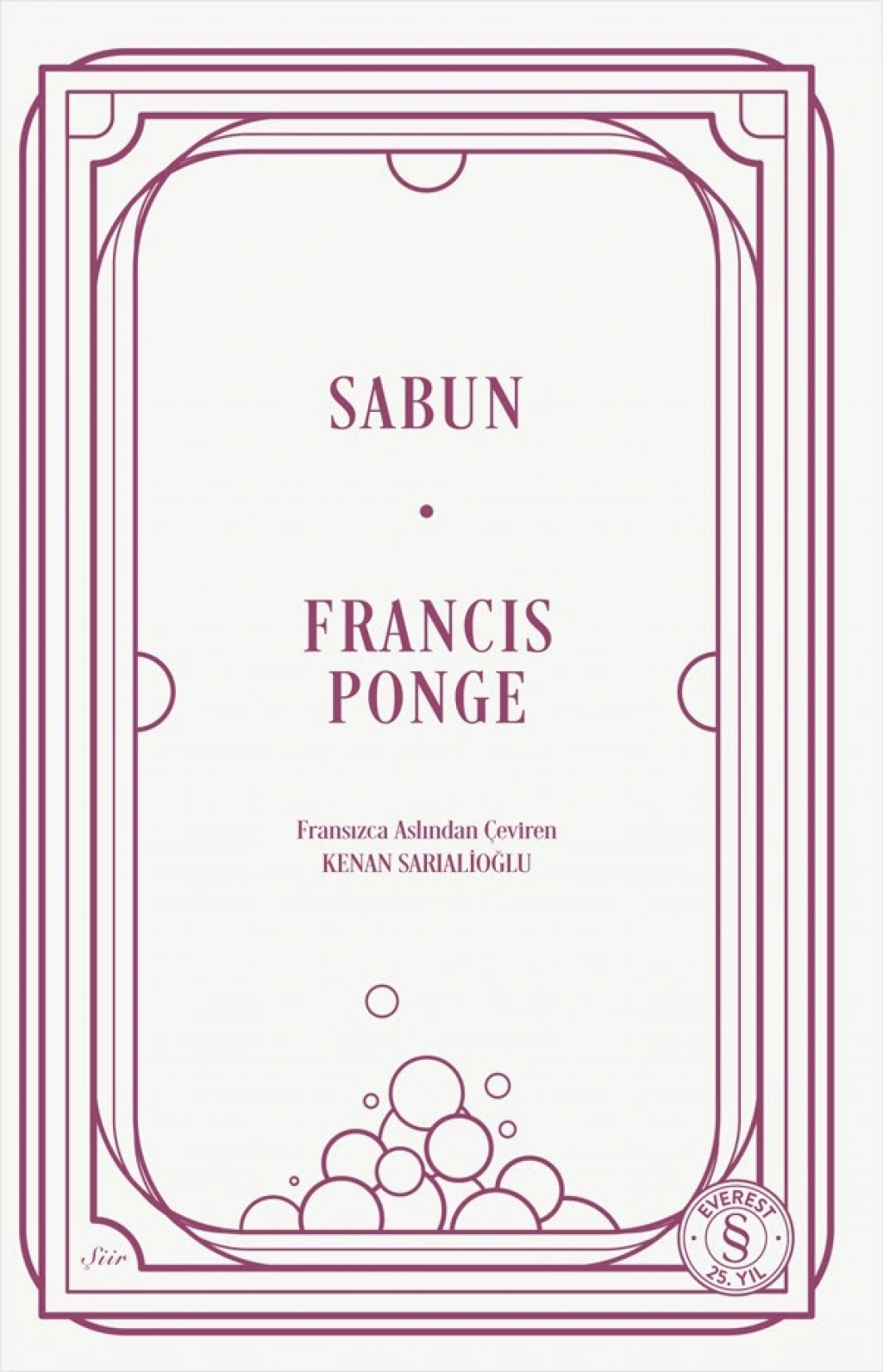 Döneminin edebiyat akımlarıyla sınırlandırılamayan 20. yüzyıl şairi Francis Ponge, düzyazıyla şiiri bir araya getiren ve edebi türlerin sınırlarını genişleten yapıtıyla, bugün yalnızca Fransa’da değil tüm dünyada “sıradan nesnelerin” öncü şairi olarak biliniyor. Sabun, gündelik hayatın içinde sıradanlaşmış nesnelerden biri olan ve İkinci Dünya Savaşı yıllarında kimi zaman küçücük bir parçasına dahi ulaşılamayan sabuna yeni bir anlam kazandırıyor. Ovuştursam köpürür, sevinir sabun... Esner, yumuşar, uysallaşır ellerim, Sızar parmaklarımdan, daha da büyür, Sedeflenir öfkesi... Büyülü taş! Hava ve suyla yaratır kokulu üzüm salkımlarını... Su, hava ve sabun üst üste binerler, birdirbir oynarlar; kimyasaldan çok fiziksel, akrobatik bileşimler yaparlar... Belki de konuşurlar güzelce?